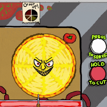 Slice of Hell is a charming skill based pizza cutting "simulator" all about making the correct type of orders for the hungry residents of hell. You will use a joystick/button combo to cut across different types of pizzas that contain the souls of the damned, all with different cutting needs.